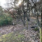 De zuidwestelijke grens met het aansluitende bosperceel is in het veld goed zichtbaar door middel van een raster.